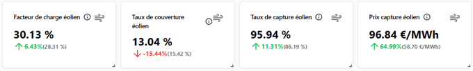 Mais le chiffre le plus impressionnant est le taux de capture, qui passe de 81,04% à 95,94%. Rappelons ce que signifie ce taux : il compare le prix moyen auquel l'éolien a vendu sa production par rapport au prix moyen du marché.